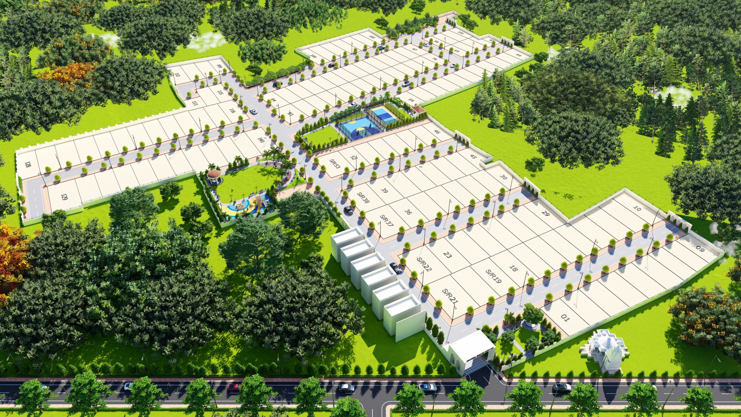 Mahima NX is a lush green, fully secured township spread over 2,97,985 sq. ft., offering around 140 Royal Villas and premium plots. With modern amenities including a pickleball court, half-basketball court, fruit garden, jogging track, kids' park, and gazebo seating, it provides a serene, luxurious, and future-ready lifestyle.